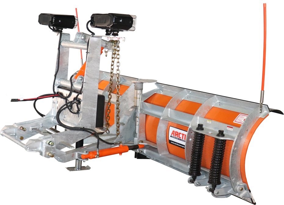 Each horizontally reinforced, steel-backed poly section, comes with a double-acting 1 1/2" X 9" ram. The Arctic V Plow full-grip joystick puts unprecedented control in the palm of your hand. Winter can visit, but it does so on your terms. Built for full-size vehicles and larger.