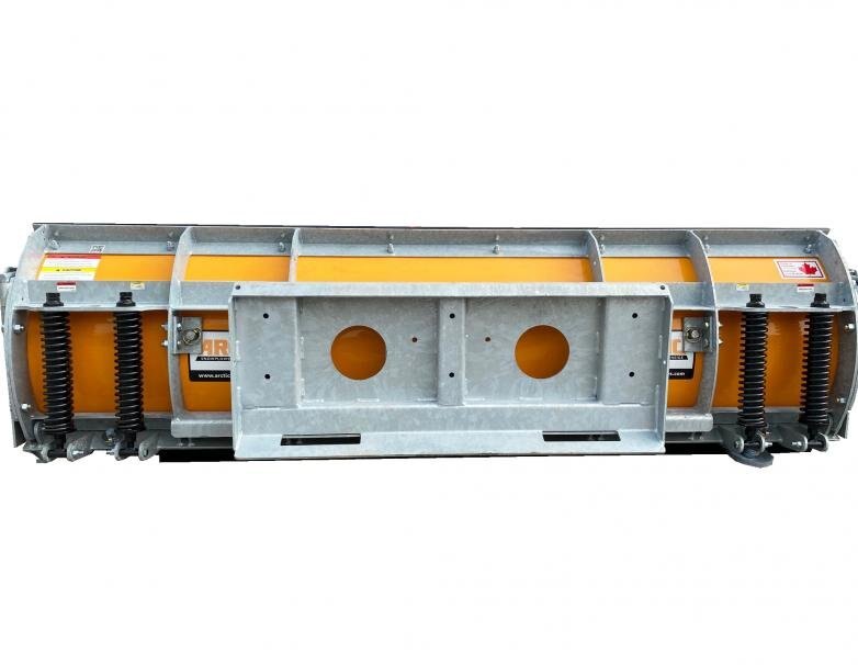 Eliminating the power angle of skid steer blade, the Arctic Box Pusher shares the same robust design features without the cylinders and hydraulics.Box Pusher is kept closer to the cab, making it more maneuverable in tight spaces. Less moving parts, quick and simple hook up and detach. Reinforced box ends with floating wear shoes keeps snow captured, minimizing spillage.