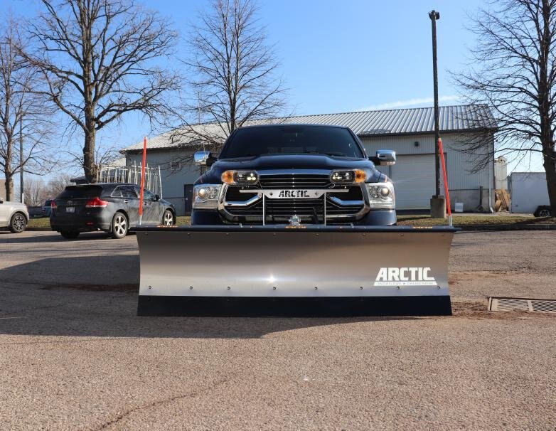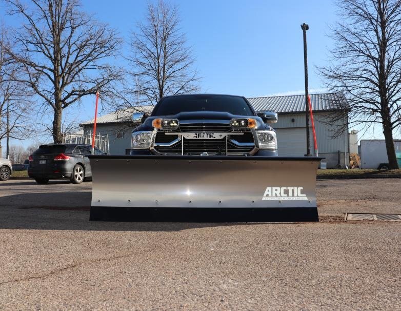 The newly redesigned Arctic S2-90SS Stainless Steel gives the half-ton pick-up truck owners everything they want: good looks, improved ground clearance, a taller moldboard, and reliable components. Curved deflector and blade guides are standard, reflective logos, and (optional) heated LED lights will let you see and be seen. Quality components, legendary strength, and galvanized steel are why Arctic Snowplows boast the lowest cost of ownership over time.